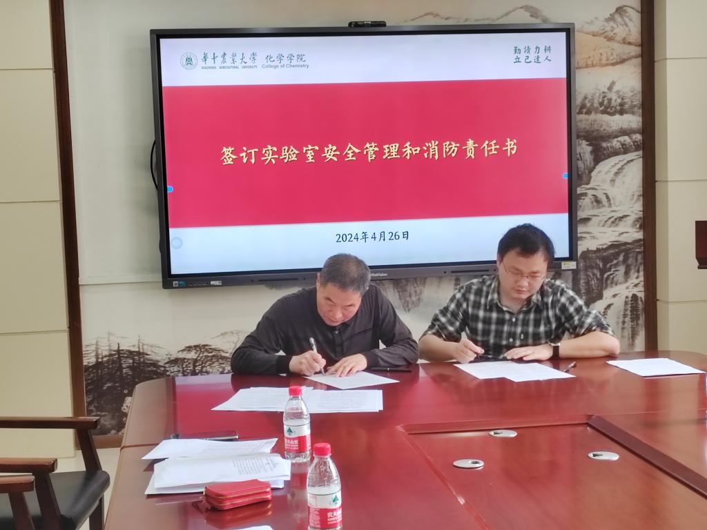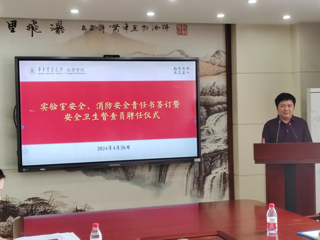 在逸夫楼B212举行实验室安全管理和消防安全签订暨首届研究生安全卫生督查员聘任仪式。党委书记涂俊才、副院长曹敏惠、副院长周静舫、化学实验教学中心副主任王嘉讯、石炜以及全体实验技术人员、科研实验室负责人、研究生安全卫生督查员等参加了本次会议,会议由周静舫主持。