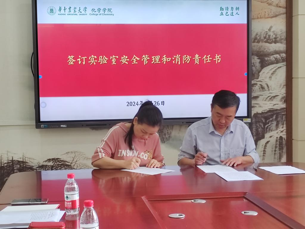 第一阶段,周静舫说明了分级签订安全管理责任书的意义和方式,与师生共同学习了安全管理责任的具体内容。她强调签订责任书是压实安全管理责任的有效手段,要高度重视,确保不漏一个区域、不漏一人。随后,曹敏惠同化学实验室教学中心副主任、周静舫同各科研实验室负责人签订了《实验室安全管理和消防二级责任书》,石炜同各实验技术人员签订了《实验室安全管理和消防三级责任书》。