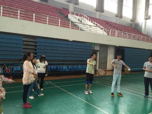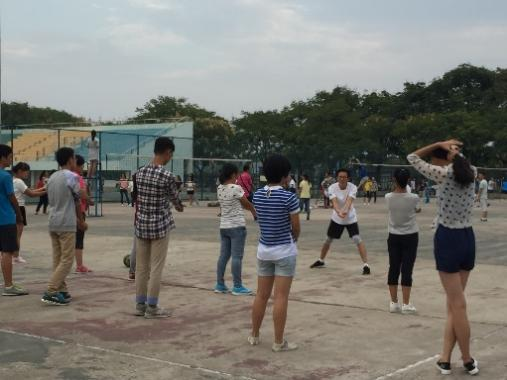 徐老师带领1504班学生打排球和羽毛球