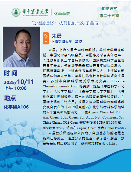 地址:湖北省武汉市洪山区狮子山1号华中农业大学化学楼